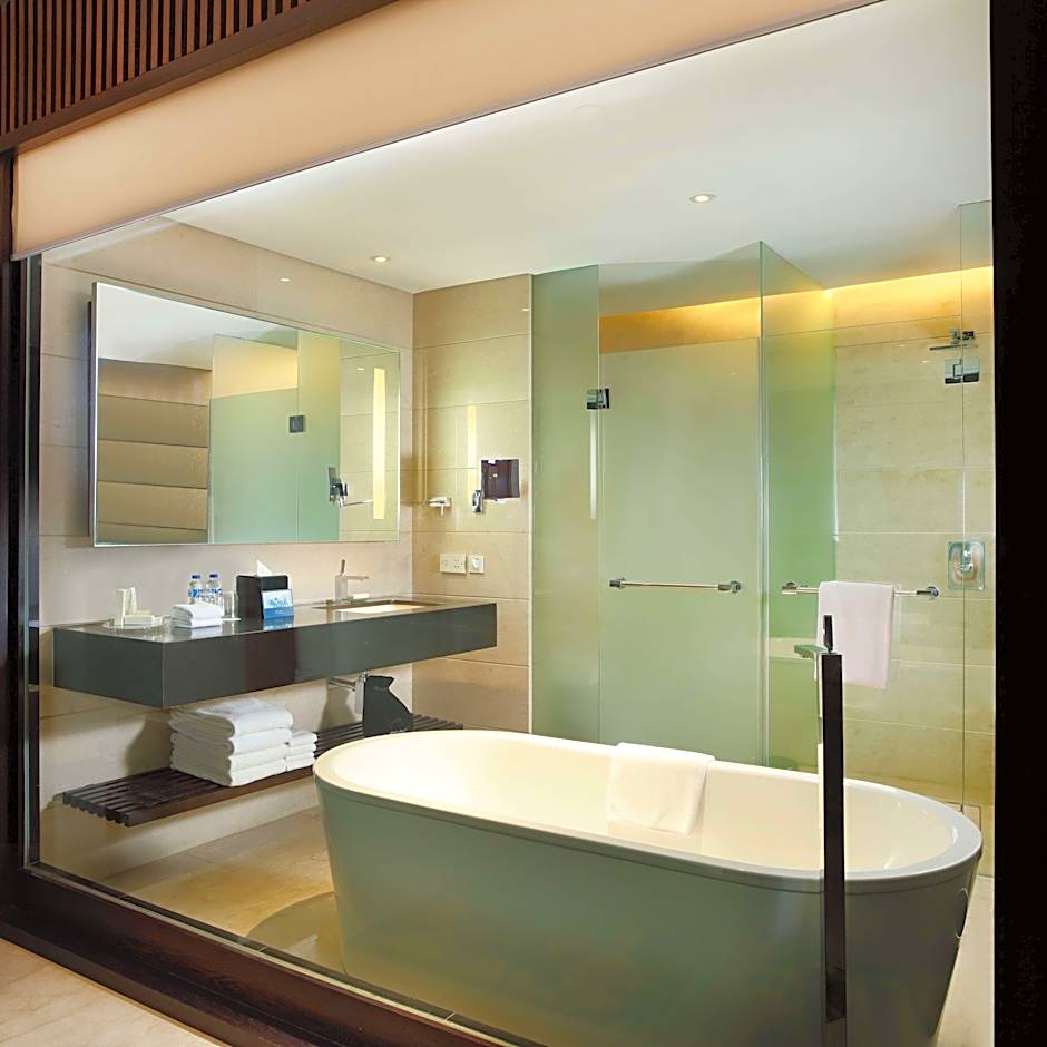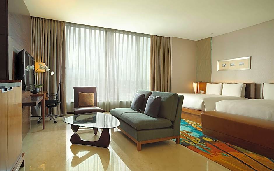 This spacious room is fitted with air conditioning and a flat-screen TV. It features a seating area with a sofa and a private marble bathroom with a separate bathtub and rain shower. Guests enjoy free afternoon tea and evening cocktails at the executive lounge.