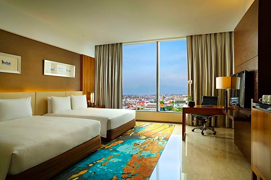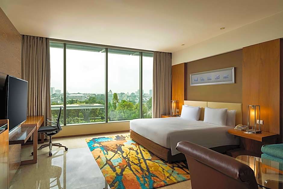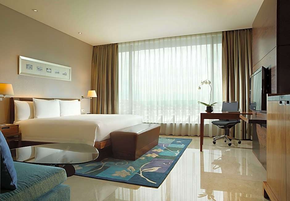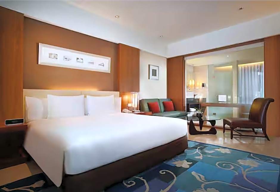 This spacious room is fitted with air conditioning and a flat-screen TV. It features a seating area with a sofa and a private marble bathroom with a separate bathtub and rain shower. Guests enjoy free afternoon tea and evening cocktails at the executive lounge.