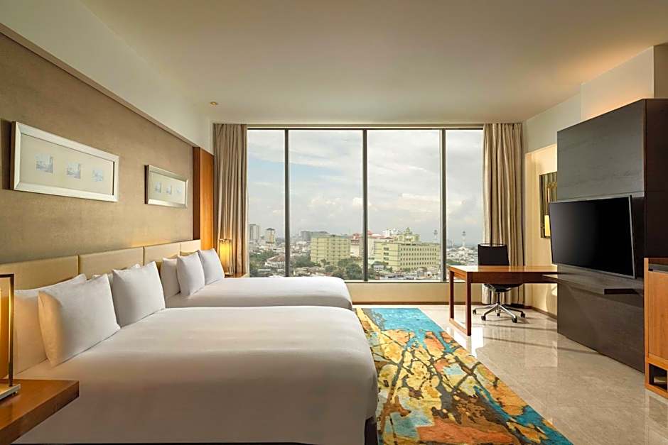 This spacious room is fitted with air conditioning and a flat-screen TV. It features a seating area with a sofa and a private marble bathroom with a separate bathtub and rain shower. Guests enjoy free afternoon tea and evening cocktails at the executive lounge.
